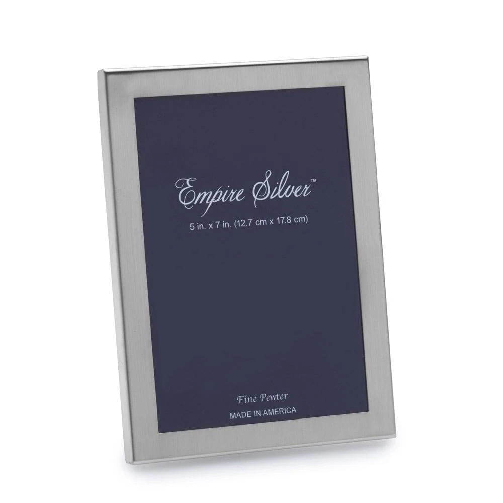 This Empire Silver Border Frame is perfect for any home and makes a great gift for births, weddings, graduations, or any special occasion. It is a timeless beauty and will be a showcase for you to proudly display your favorite memories and cherished friends and family. Crafted of pewter. Made in America. Frame measures 5 inch wide x 7 inch high and features a lovely 1/2 inch border.