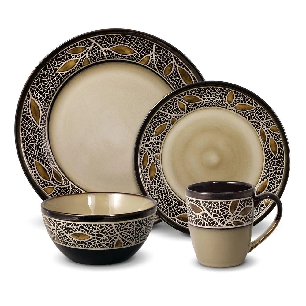 Crafted of Stoneware, featuring a reactive glaze. Due to the nature and hand-crafted qualities of reactive glaze, no two pieces are exactly alike and will exhibit unique variations in color and pattern. Product may slightly differ from image shown. Each service includes: 11-1/4 inch dinner plate, 8-3/4 inch salad plate, 6 inch diameter x 3 inch high (26 ounce) soup cereal bowl and 14 ounce mug. Microwave and dishwasher safe.