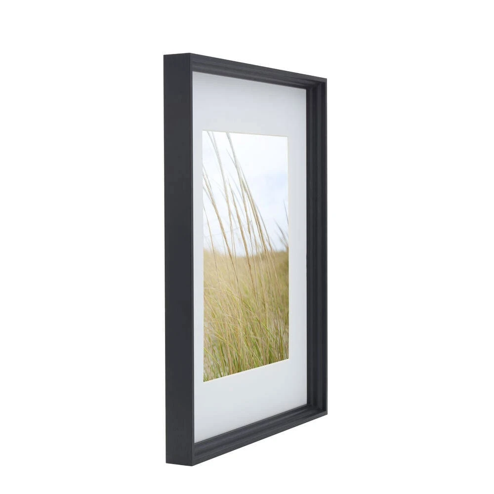 From our family of brands, this Studio Nova Wall Frame in Black can be used with the mat to display one 11 x 14 inch photo, or without the mat to display one 16 x 20 inch photo of a special moment with friends and family. The classic design features sleek, black edges that bring a modern flair to your photo display. This frame has a beveled mat that draws attention to your photo and highlights its beauty. Use the sawtooth hangers on the back of the frame to hang vertically or horizontally on any wall. Makes a great gift. Frame measures 17 x 21 x 1.6 inches.