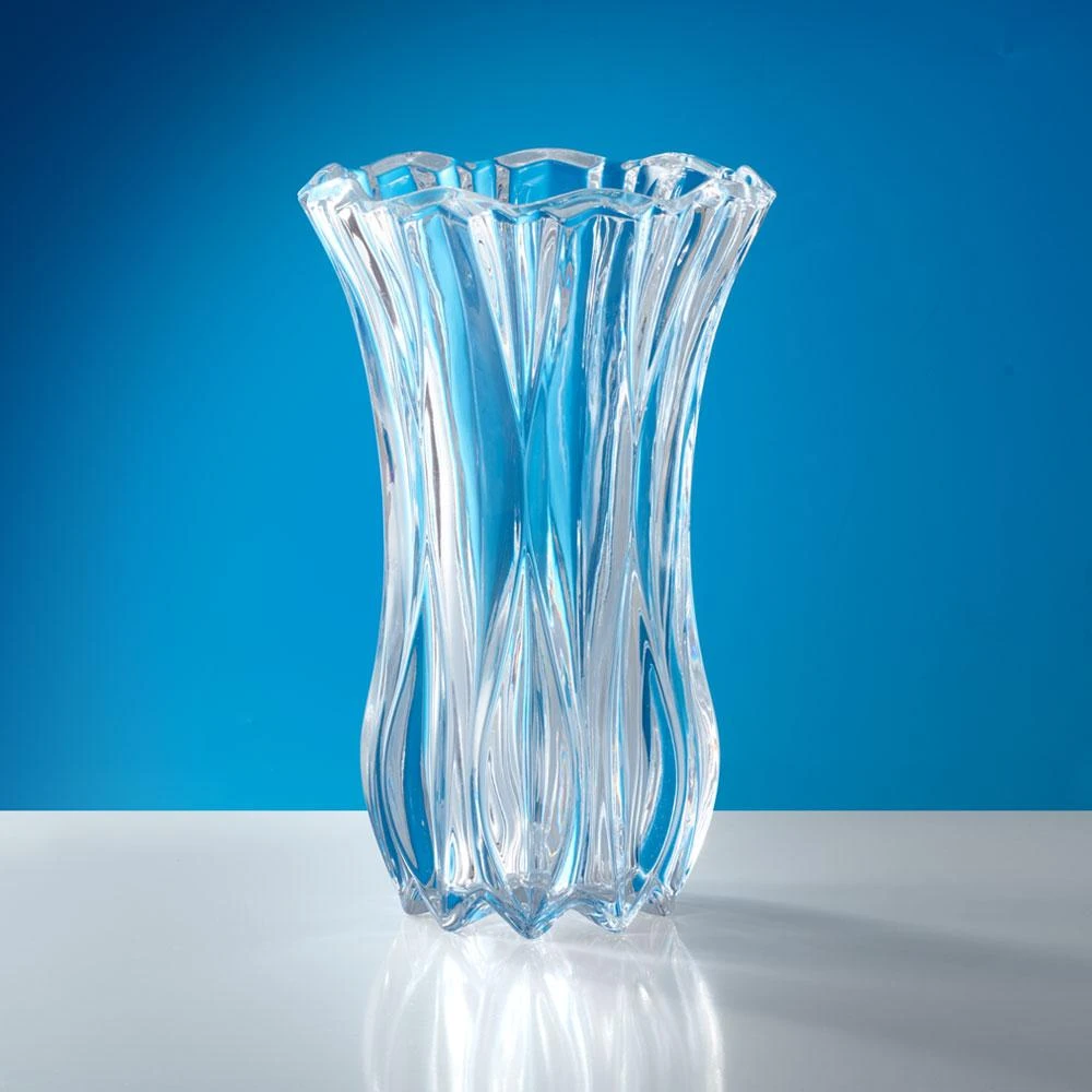 From the Blossom crystal collection, each distinct piece of the collection suggests high quality, intricate detail and brilliant design. This gorgeous crystal vase features flowing sculpted edging that depicts a delicate flower blooming in the spring and will highlight the brilliant colors of a fresh flower bouquet. Crafted of lead-free crystal. Gift boxed. Hand washing recommended. Vase measures 12 inches high.
