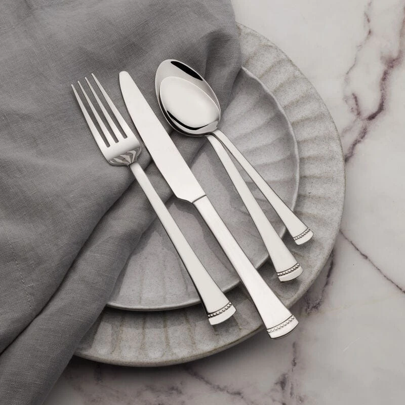 • 20 piece set includes 4 each of dinner forks, dinner knives, dinner spoons, teaspoons