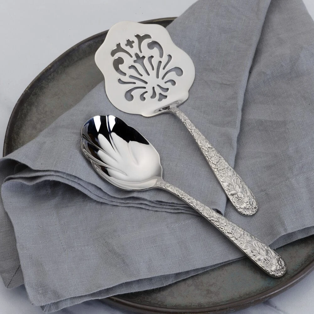 This Towle Contessina 2 Piece Serving Set features a bold floral design from the top to bottom of the handle and will add the look of a lush garden to your table.