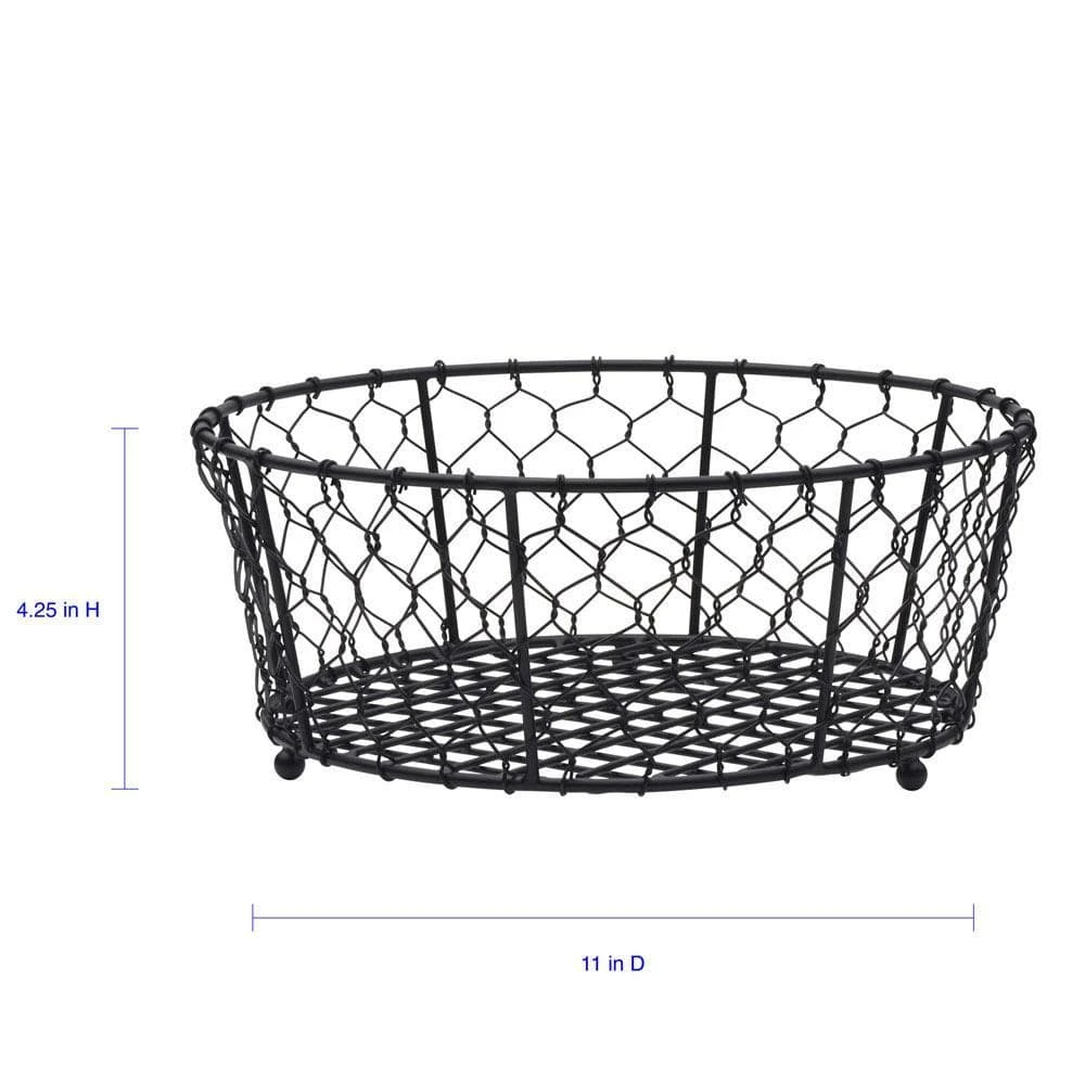 This Gourmet Basics Farmers Market Round Centerpiece Basket features a contemporary black finish and a wire frame design that add a stylish and functional addition to your home décor. Perfect for holding fruit, bread, other foods, or small everyday items for quick, easy access.