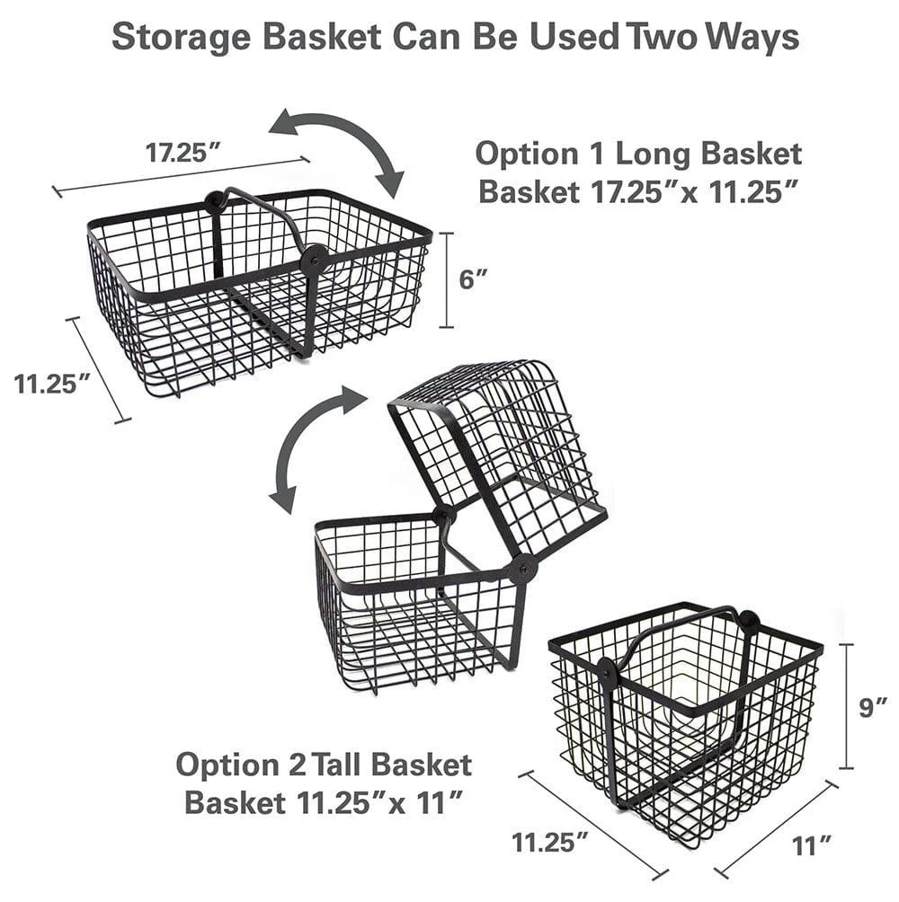 • Measures 11-1/4 inch wide; Tall Basket measures 11 inch long x 9 inch high; Long Basket measures 17-1/4 inch long x 6 inch high