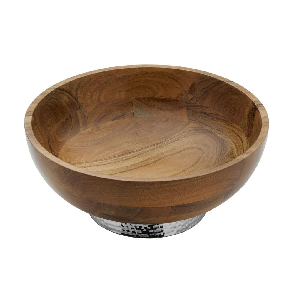 This Towle Hammersmith Wood Bowl with Hammered Base is beautifully crafted of acacia wood and sits on a hammered metal alloy pedestal base. It’s perfect for serving your guests in style and will add an elegant addition to your table.