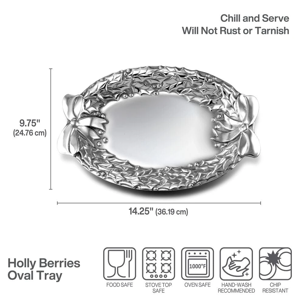 From our family of brands, this Wilton Armetale® Holly Berries Oval Serving Tray is perfect for serving holiday treats and side dishes and will look beautiful on your dining or buffet table. Formal to casual, stylish to rustic, each piece we craft is designed to capture the spirit of your life.
