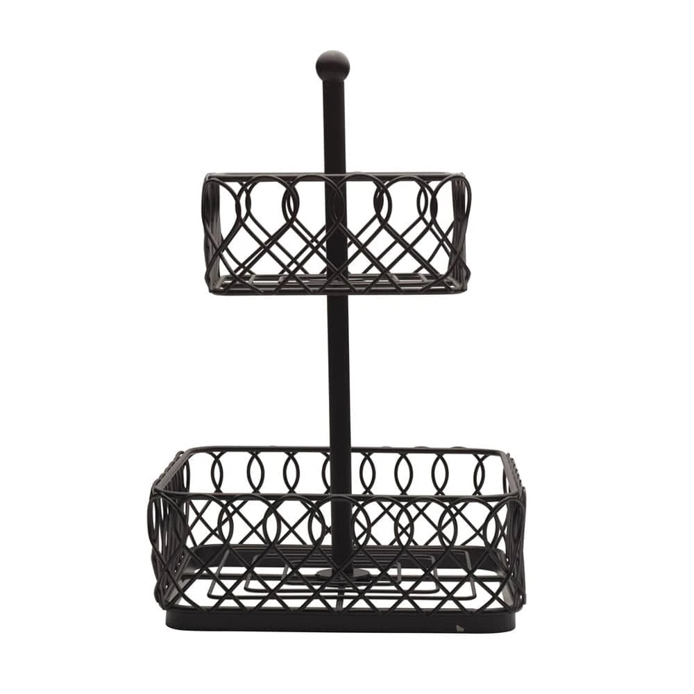 From the Gourmet Basics by Mikasa Collection, this Juliette 2 Tier Storage Basket can hold multiple items while taking up minimal counter or table space. Air flows through the open-wire design allowing fruits to ripen evenly, and the classic black finish will compliment any decor.