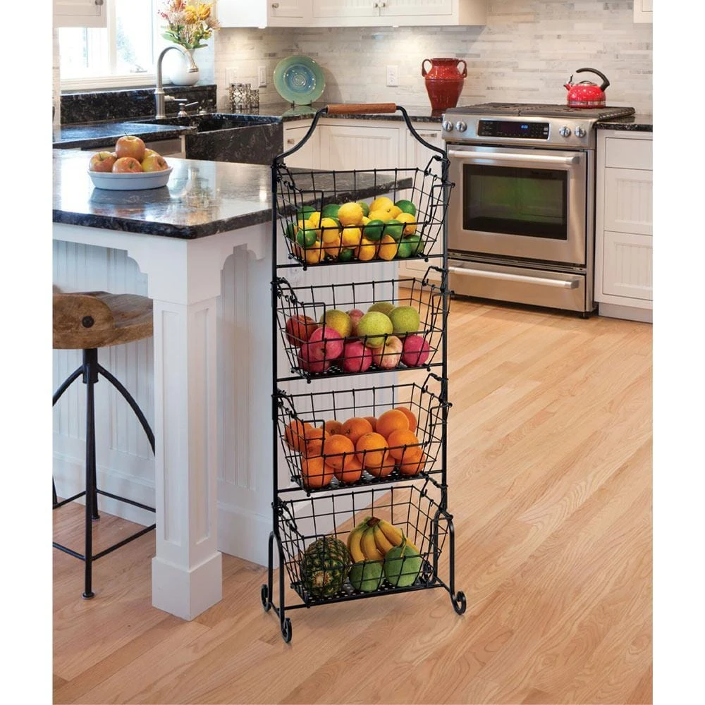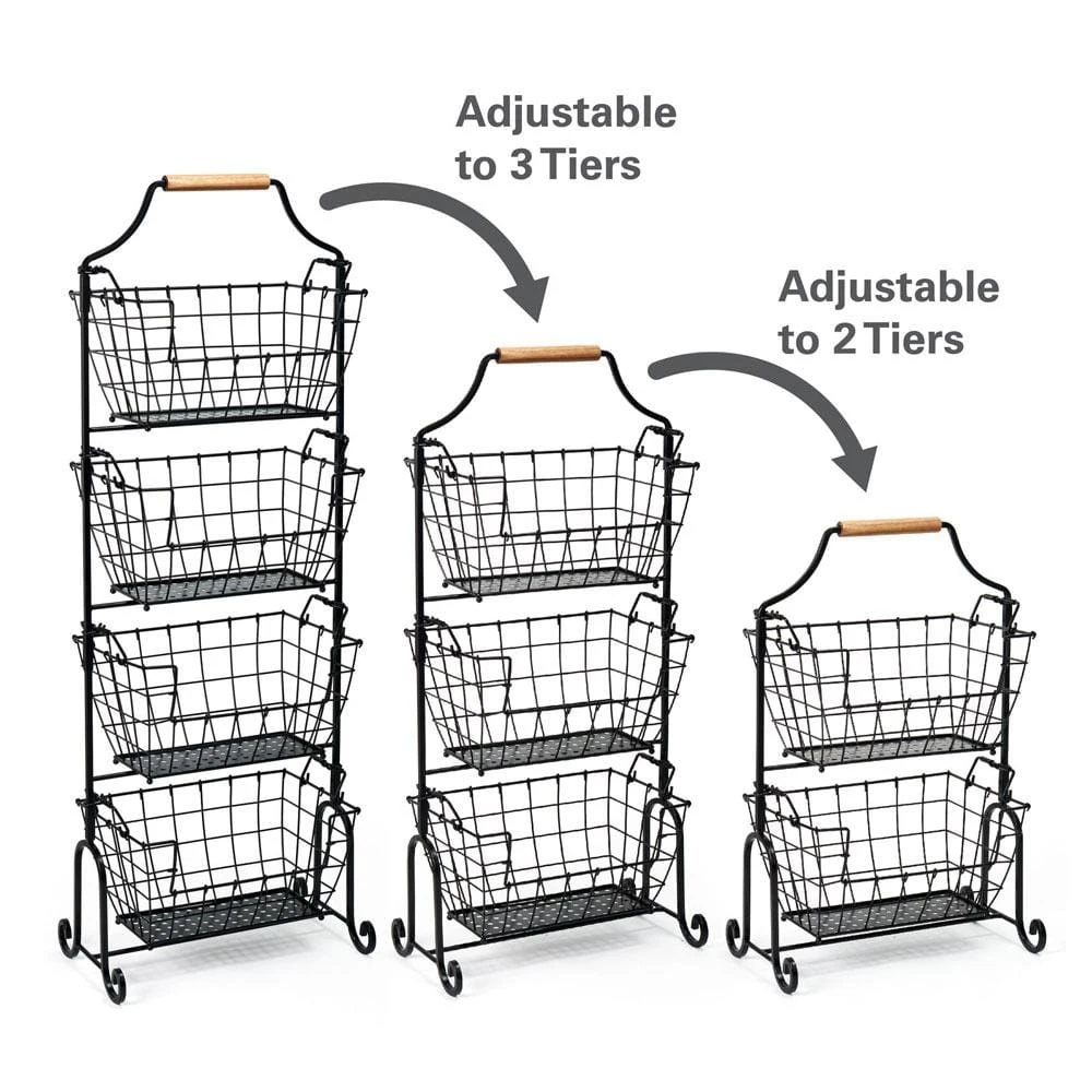 This Gourmet Basics Laguna 4 Tier Basket can be customized as a 4-tier, 3-tier, or 2-tier stand, or you can use the baskets separately. Features an acacia wood handle to easily transport around your home.