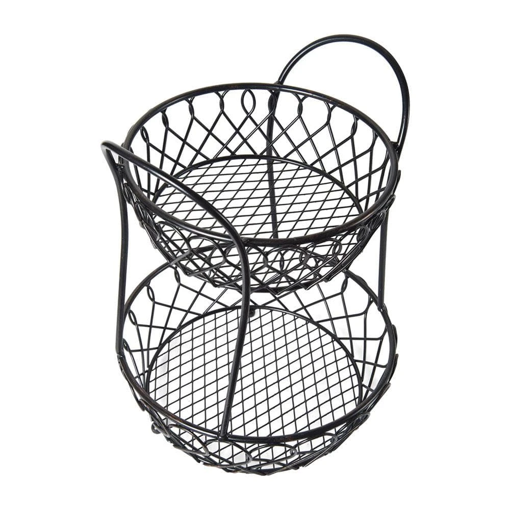 This Lattice 2 Tier Countertop Storage Basket has an antique black finish that will bring a classic touch to your décor. Handcrafted from iron for long-lasting beauty even under rigorous use, this basket features a 2-tier design to create more storage space while cutting down on counter clutter.