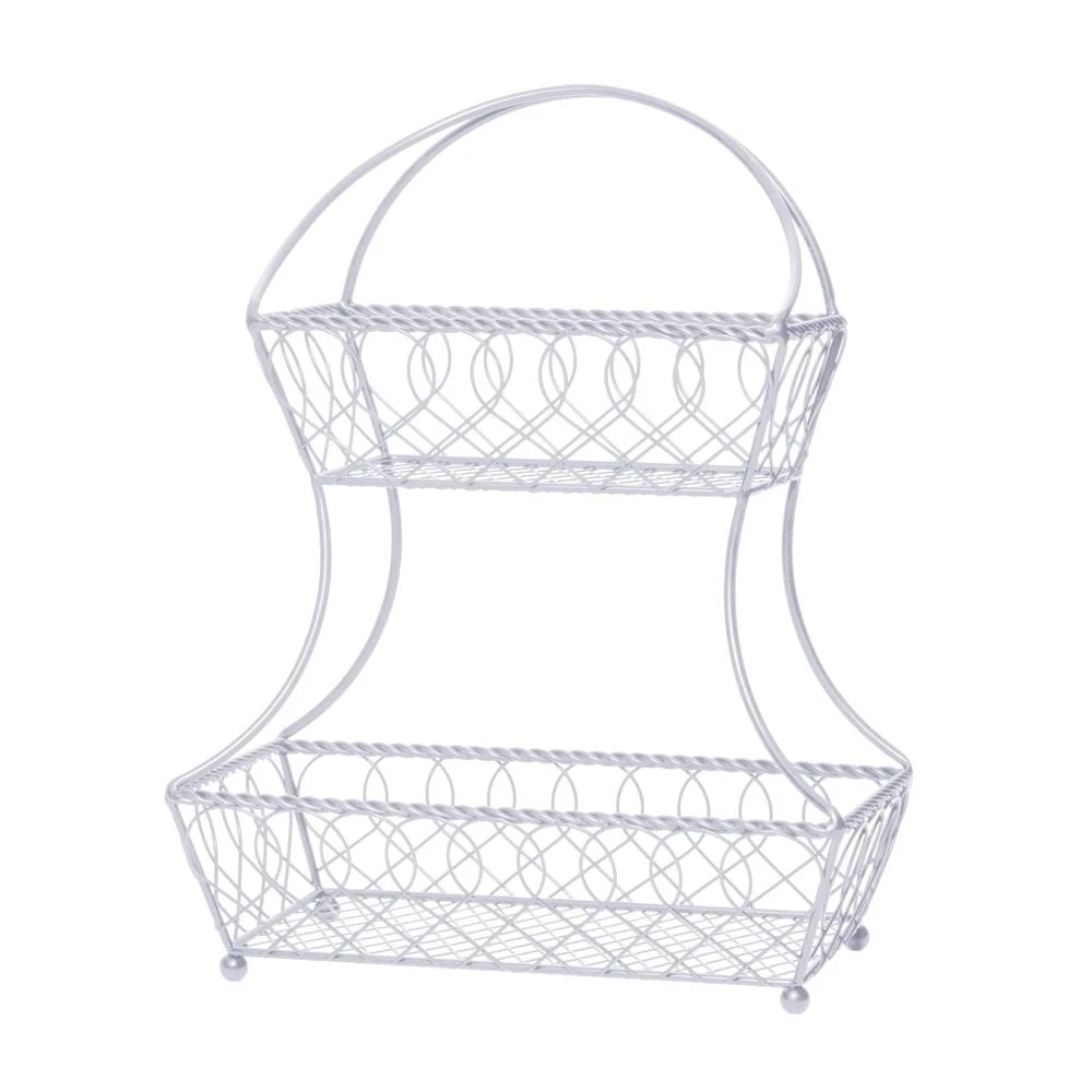 This Loop And Lattice 2 Tier White Flatback Storage Basket is a perfect catch-all, as well as a decorative accent for your kitchen counter. The flat back lets you place it right up against a wall on a counter to save space. Handcrafted from wrought iron with a contemporary white finish. To clean, simply wipe with a damp cloth. Basket measures 17-1/2 x 14 x 7 inches. This product contains Carbon Black. For more information about chemicals in this product, visit www.lifetimebrands.com/ab1200Â