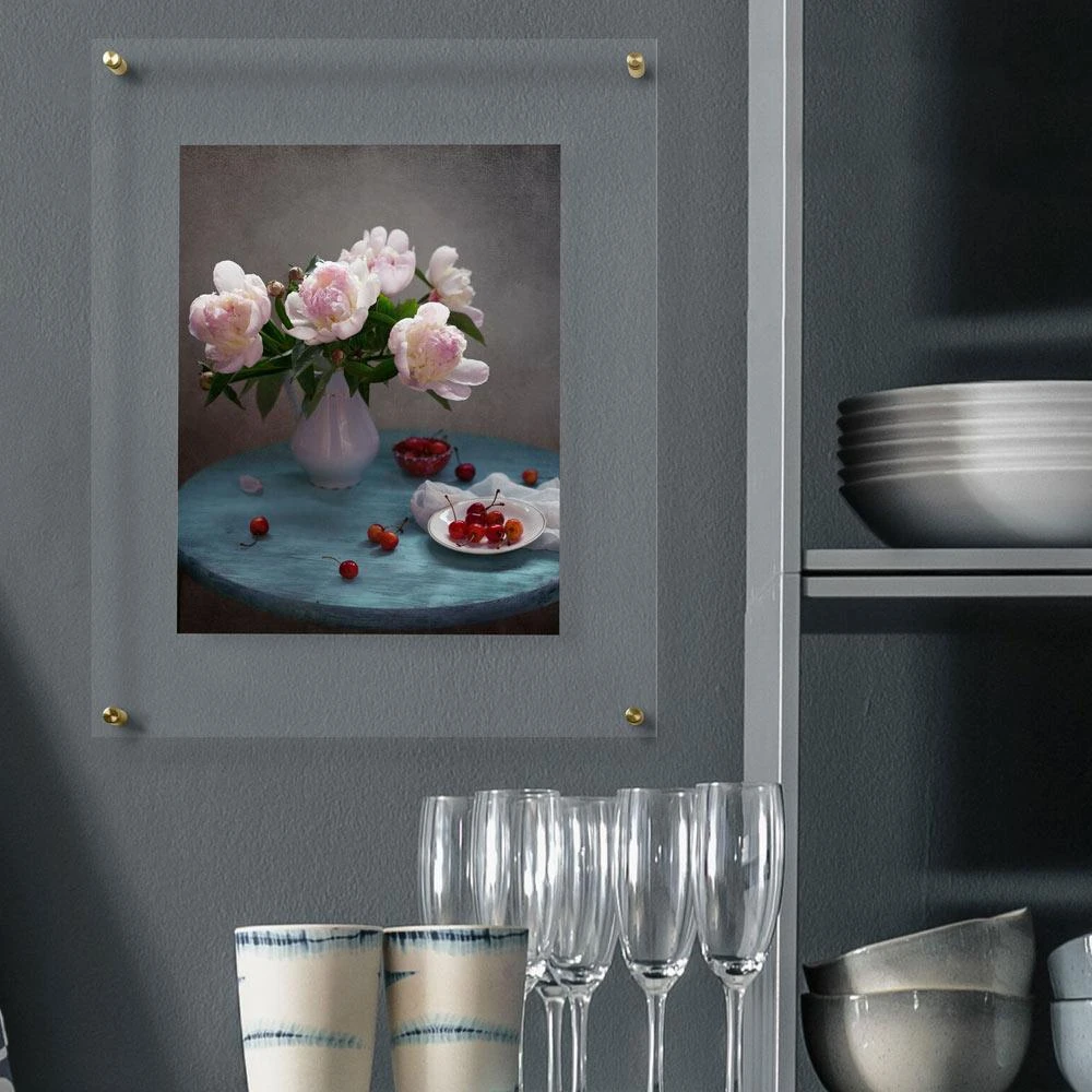 This Mikasa Clear Acrylic Floating Wall Frame will display your favorite 11 x 14 inch photo. Crafted of acrylic with gold hardware accents, this contemporary clear frame gives the illusion that your photo is floating and complements any décor, allowing the color of your wall to serve as a backdrop. Simply peel the protective film from both sides of the acrylic sheets to reveal the crystal clear finish. Frame measures 16 x 20 inches, and holds (1) 11 x 14 inch photo