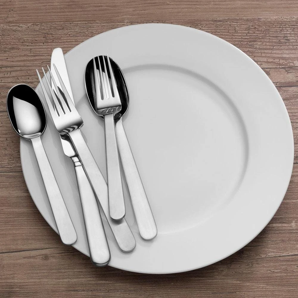 This Blume Flatware Set features gentle curves and a subtle band around the neck of each handle, making this pattern timeless for both casual and formal entertaining. Crafted of 18/0 stainless steel, this set is perfect for everyday use. 20 piece set, service for four, includes (4) each: dinner fork, salad fork, dinner knife, dinner spoon and teaspoon. Dishwasher safe.