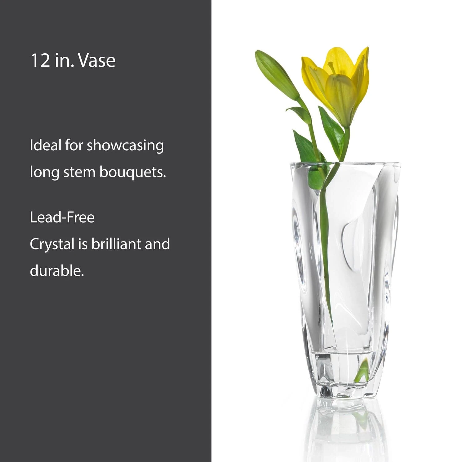 Mikasa Cassia Vase features a contemporary diagonal twist optical design that coordinates well with any home decor. Crafted of lead-free crystal. Dishwasher safe. Crystal vase measures 12 inch high.