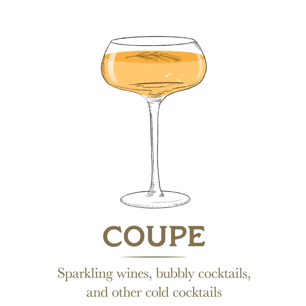 This Craft Cocktail Coupe Champagne Wine Glass Set is uniquely designed for specialty drinks, allowing you to craft and enjoy quality cocktails at home. These elegant and sophisticated coupe glasses have a wide bowl to give champagne or sparkling wine a fuller taste and are also ideal for serving shaken or stirred cocktails without ice.