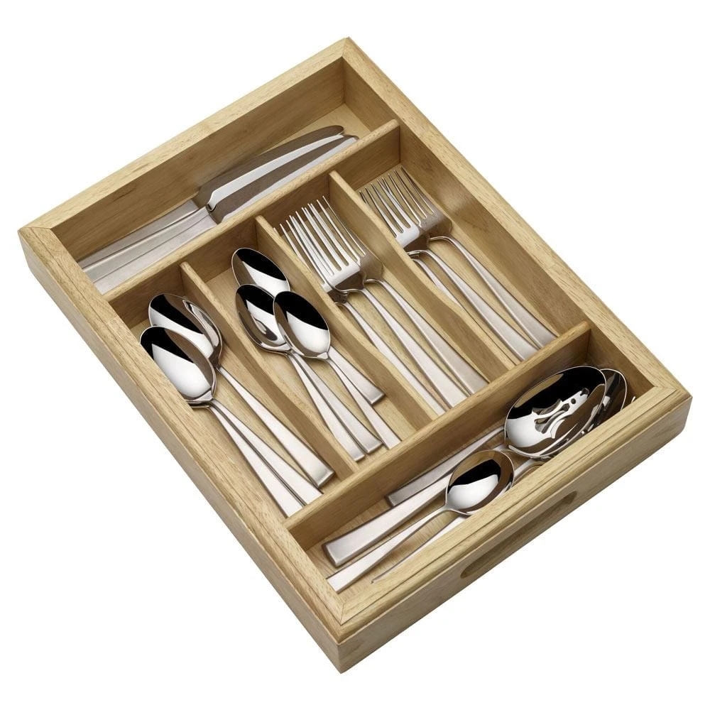 This Mikasa Essex Satin Flatware Set is a simple, yet elegant pattern and offers a clean, sophisticated silhouette, suitable for any occasion. This 65 piece set includes a service for 12, plus 5 serving pieces.