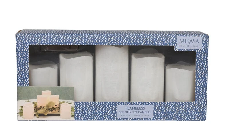 • Flameless Set of 5 Wave Pillar LED Candles and Remote includes 5 candles