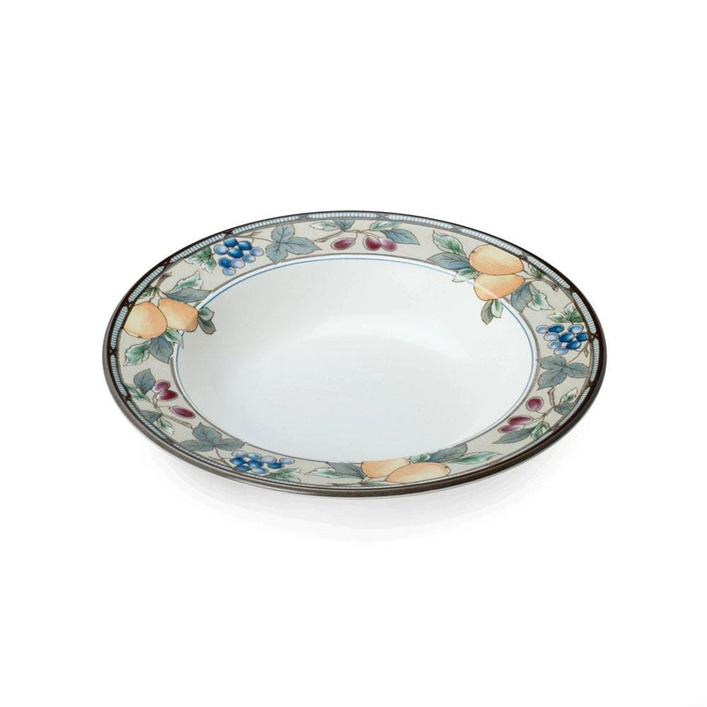 Colorful fruits and leaves enliven the Garden Harvest pattern. This longtime favorite is perfect for everyday use and has a wide array of accessories to create a complete casual dining statement. This pattern coordinates perfectly with casual stemware and flatware and is dishwasher safe, oven safe, freezer safe and microwave safe. Crafted of stoneware. This 9-3/4 inch soup bowl holds 16 ounces.