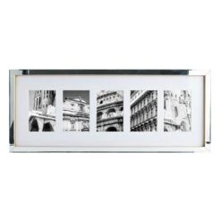 Showcase five 4 x 6 inch photos of your cherished memories with the Mikasa Mirrored Gold 5-Opening Collage. This eye-catching frame features a lustrous mirror finish on the front and an elegant golden tone on the sides. The collage layout draws attention to your favorite photos. Easily hang on any wall using the d-ring hangers. Perfect for your living room, bedroom, bathroom, and more.