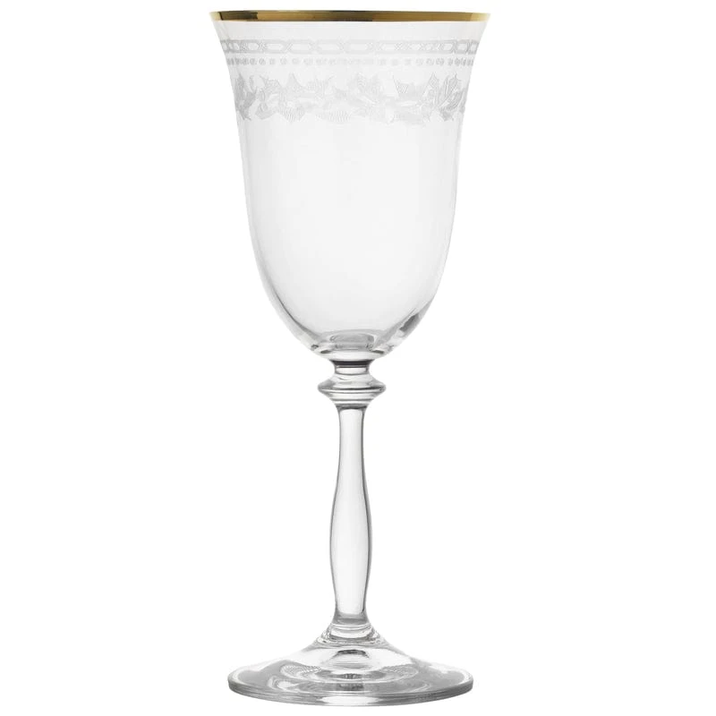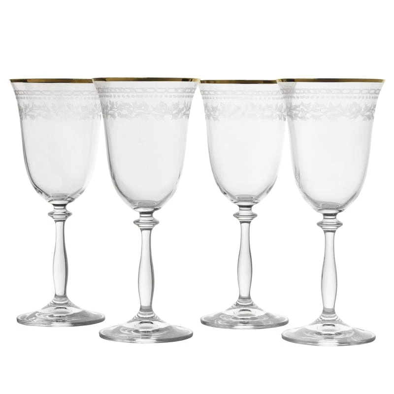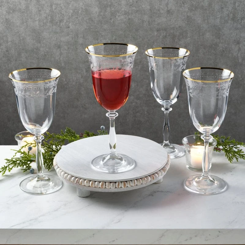 These Holiday Traditions Set of 4 Gold Rim Red Wine Glasses feature charming holly and berry borders combined with a coordinating gold rim for an elegant statement throughout the holidays.
