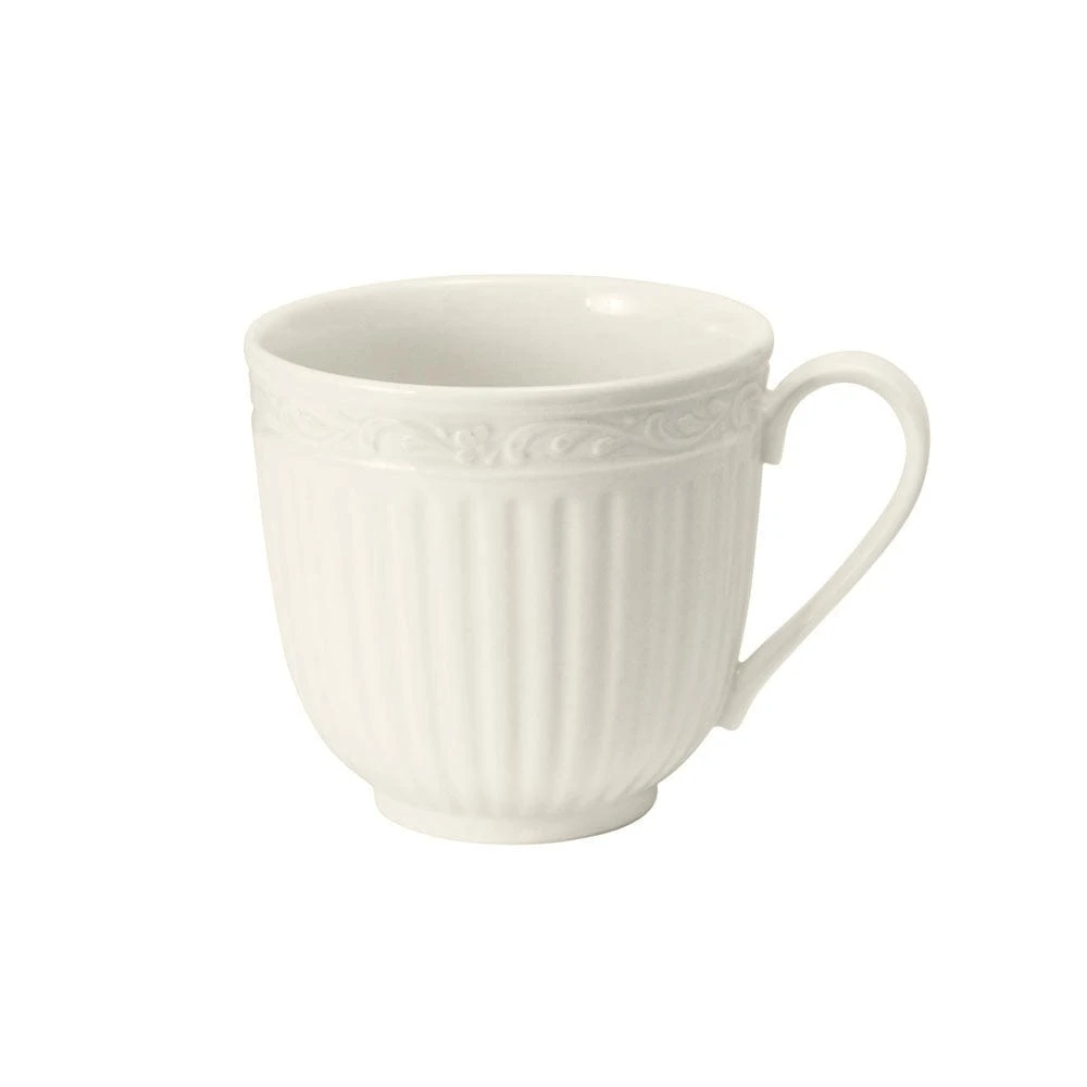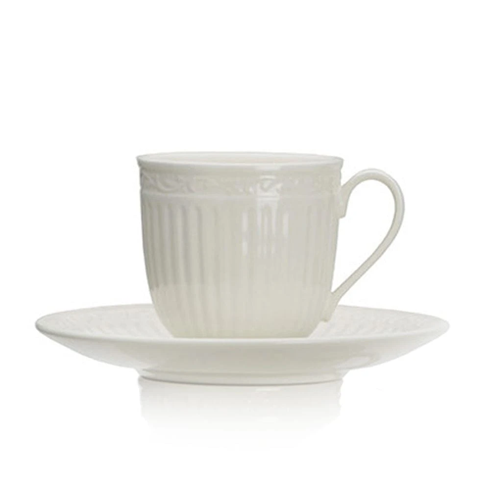 This Italian Countryside Tea Cup and Saucer features fluted bands and column-like detailing, that recalls classical Italian architecture. Our classic Italian Countryside fluting and scroll design will create a classically stylish dining statement.