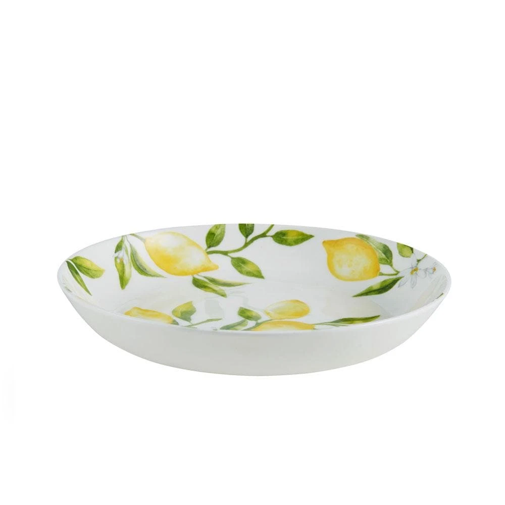 Mikasa Lemons dinnerware features a beautiful lemon decal design. This timeless lemon, floral design will bring the sunny color of a lemon orchard to your tabletop, and is perfect for formal or casual dining. Crafted of bone china. Microwave and dishwasher safe. Set of 4 pasta bowls, each measures 8-1/2 inch wide x 2-1/2 inch high, and holds 20 ounces.