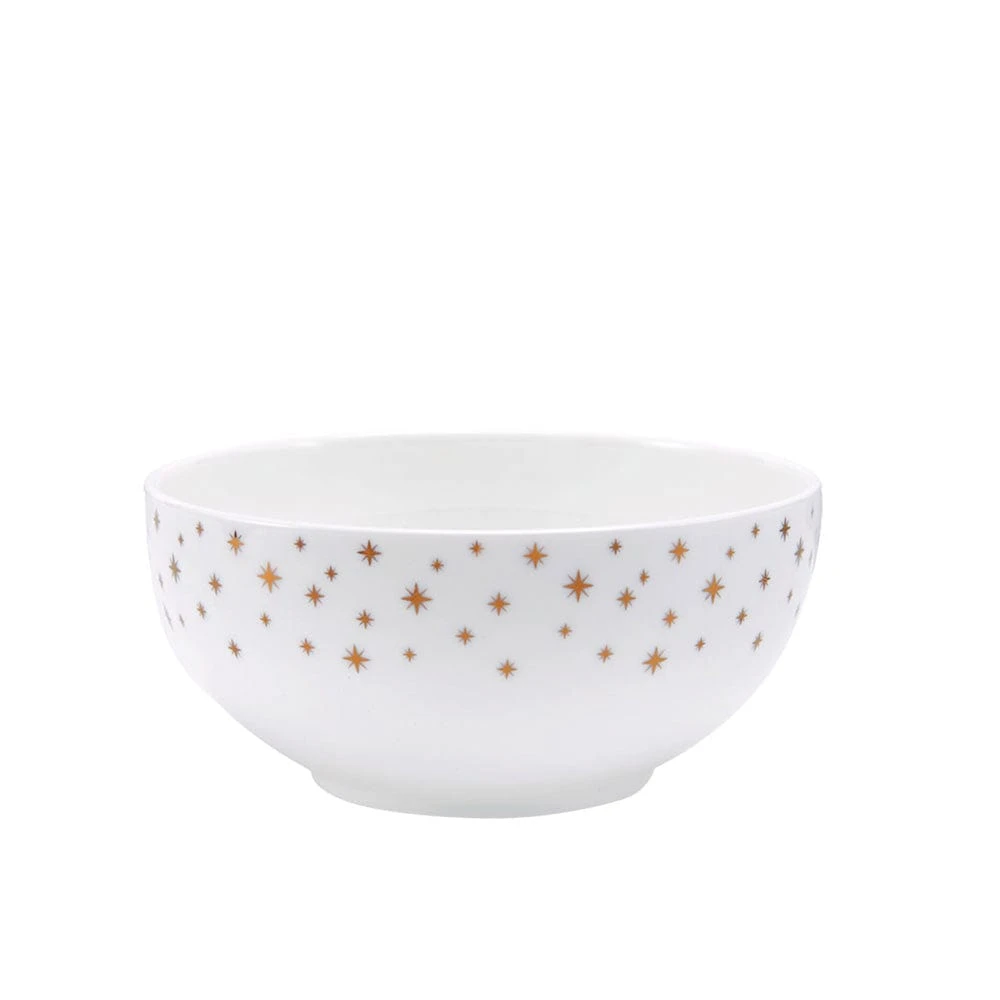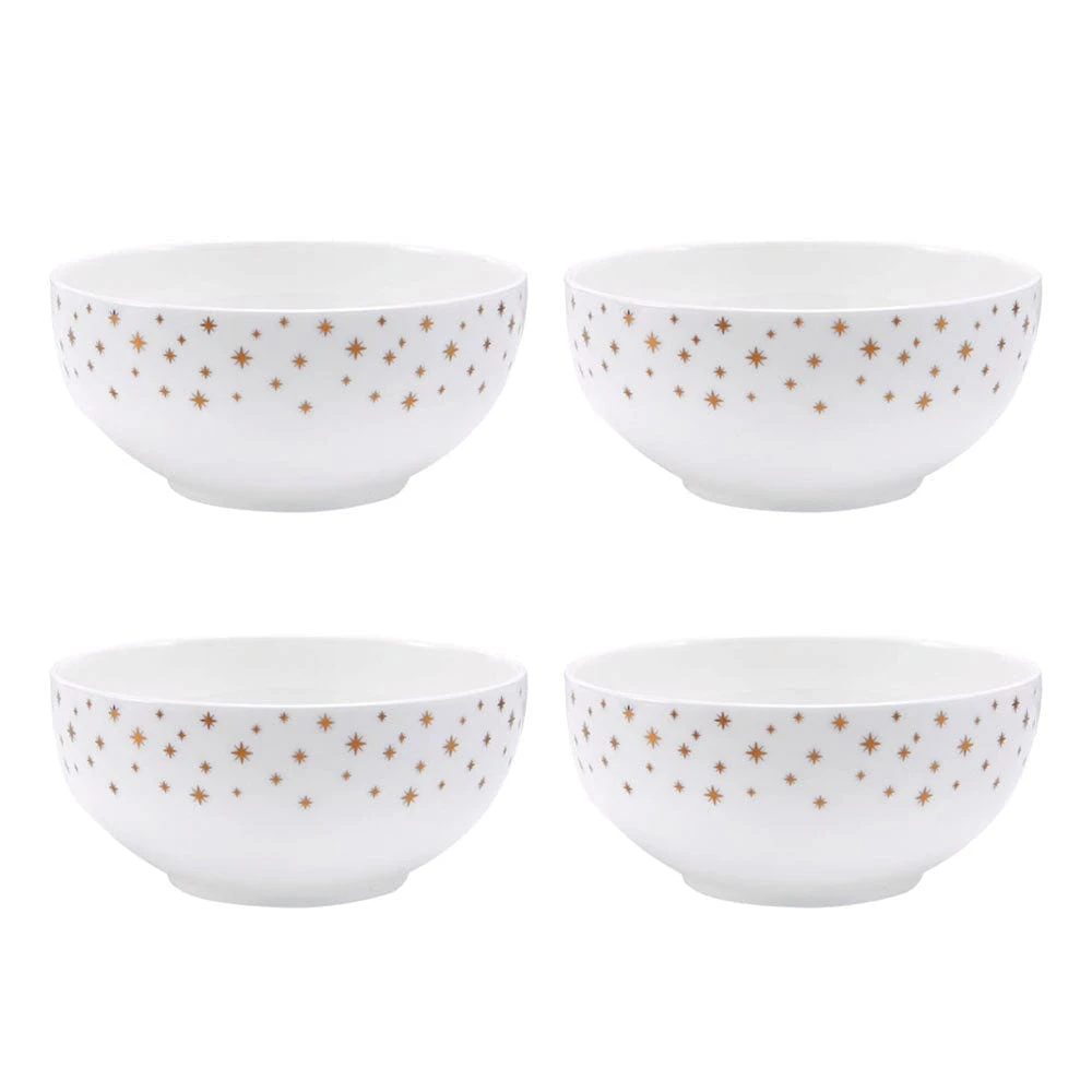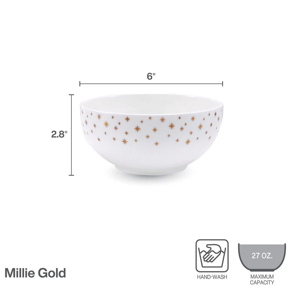 This Mikasa Millie Gold Set of 4 All-Purpose Bowls feature a contemporary coupe shape that is sprinkled with a dazzling star pattern, and is perfect for everyday dining, but also great for bringing excitement to upbeat celebration dinners.