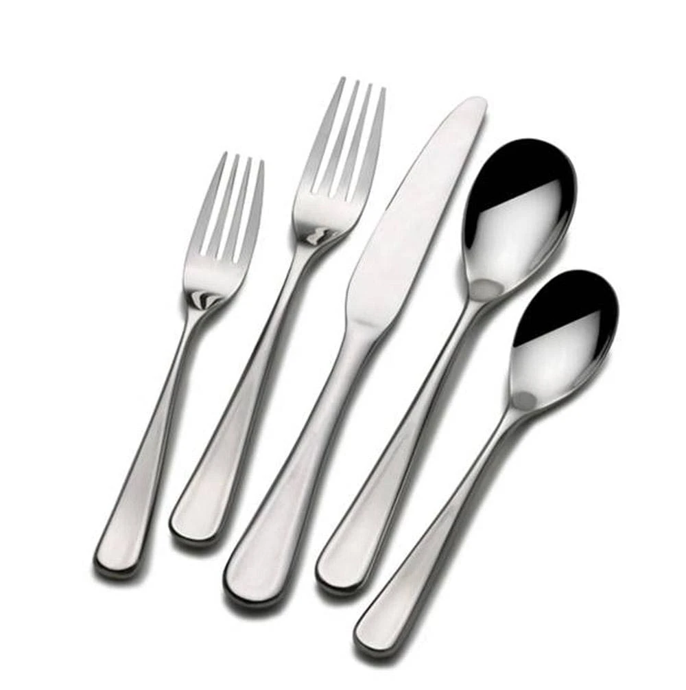 This Philo Flatware Set, by Mikasa, features a simple, classic teardrop-shaped handle with a satin finish. This attractive set is perfect for casual and formal affairs and will coordinate with any dinnerware collection. Crafted of superior quality 18/0 stainless steel. Dishwasher safe. 20 piece set, service for four, includes (4) each: dinner fork, salad fork, dinner knife, dinner spoon and teaspoon.