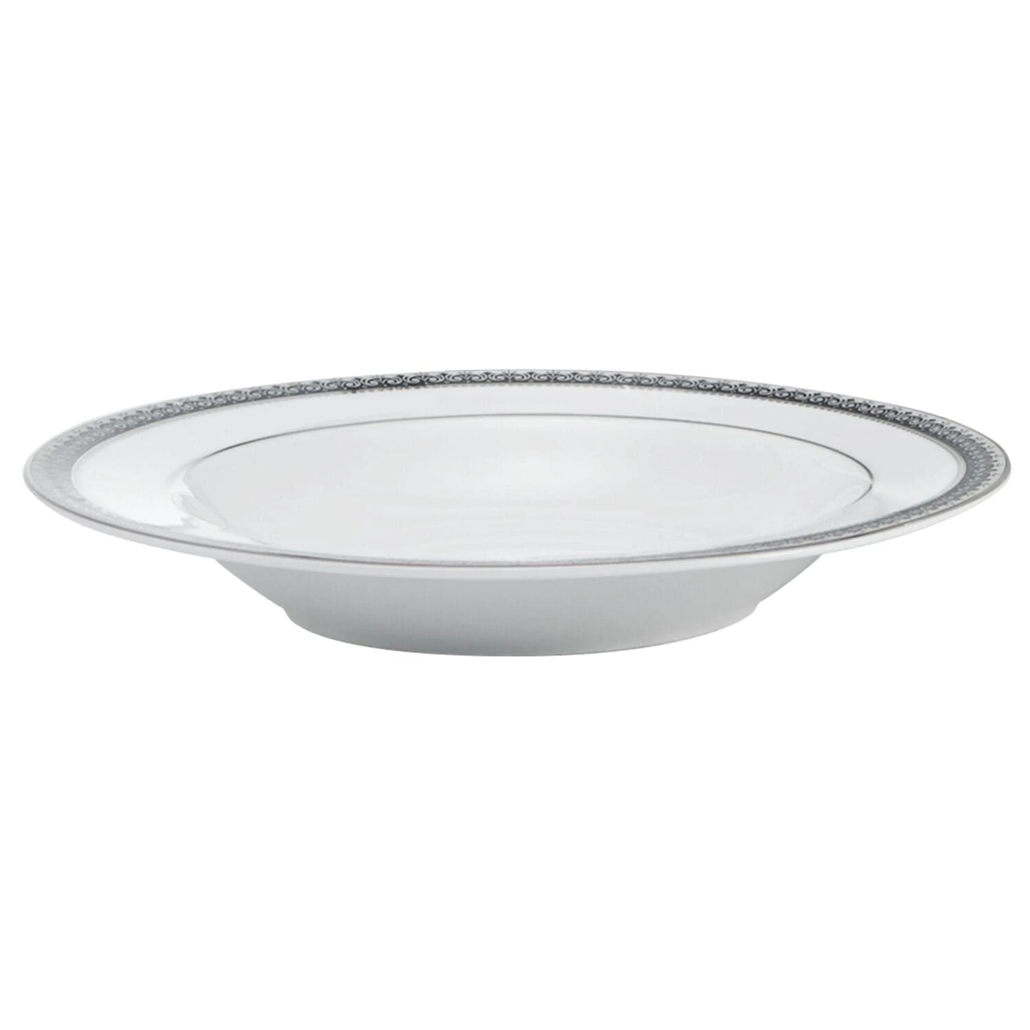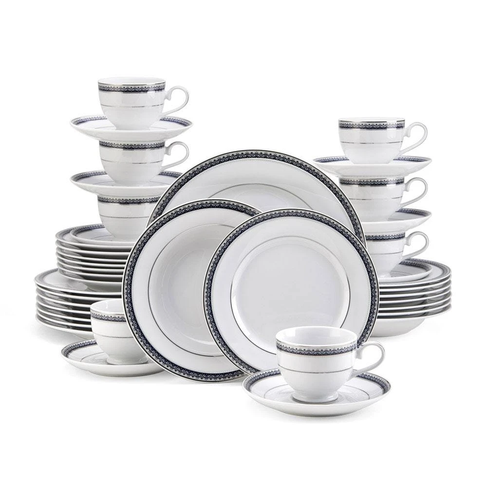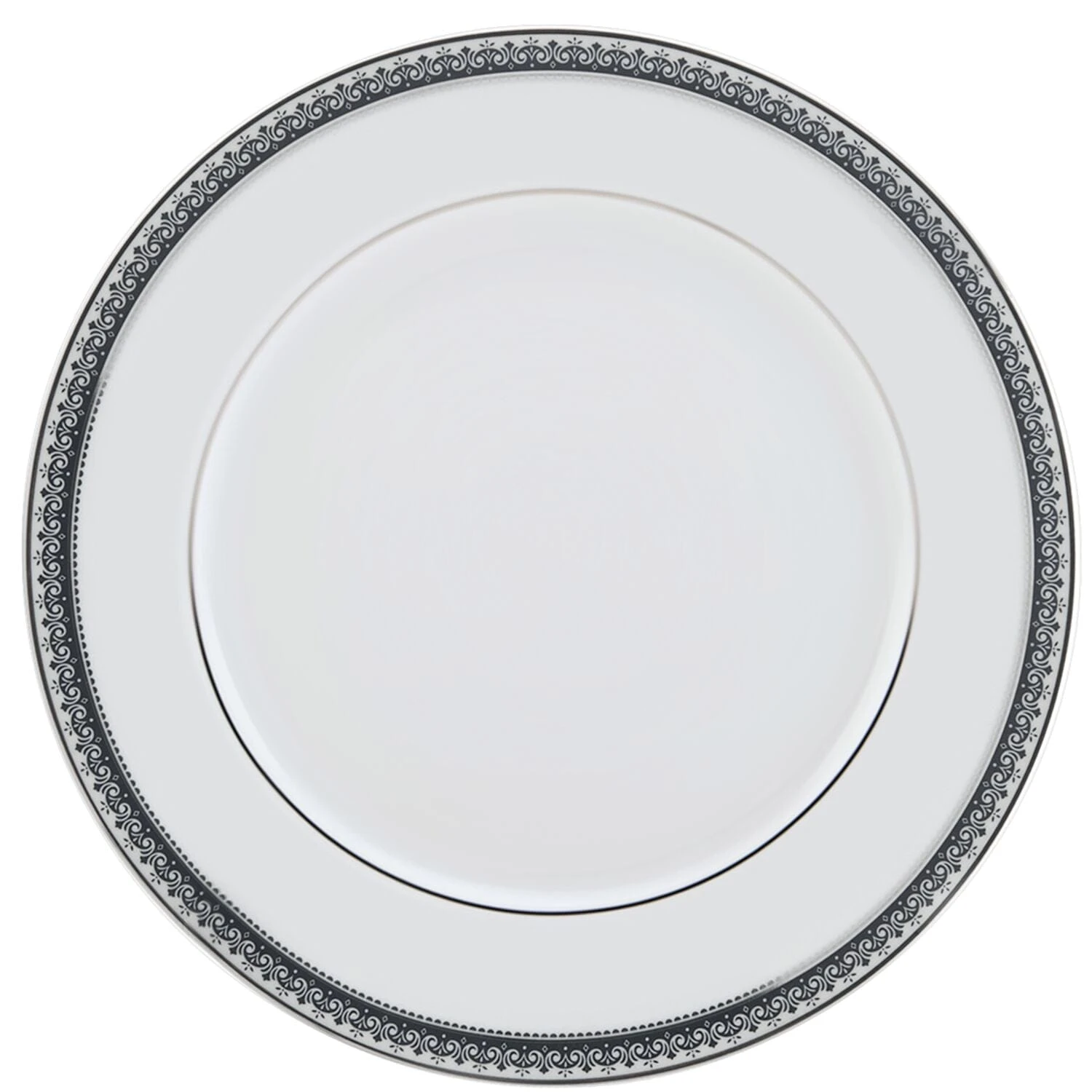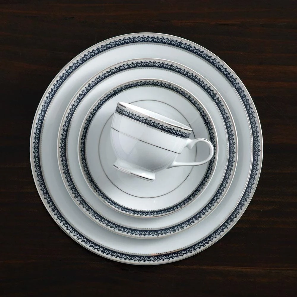 Platinum Crown Cobalt is a regal pattern that features an intricately detailed platinum border with accents of cobalt. This beautifully styled striking fine china pattern will add elegance and grace to your tabletop. The stylish silvery scroll design with a soft gray background and platinum border are classic and timeless, perfect for any special occasion.