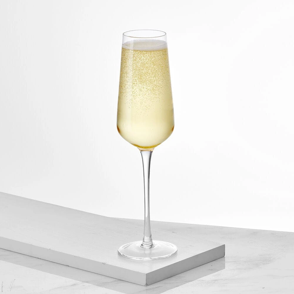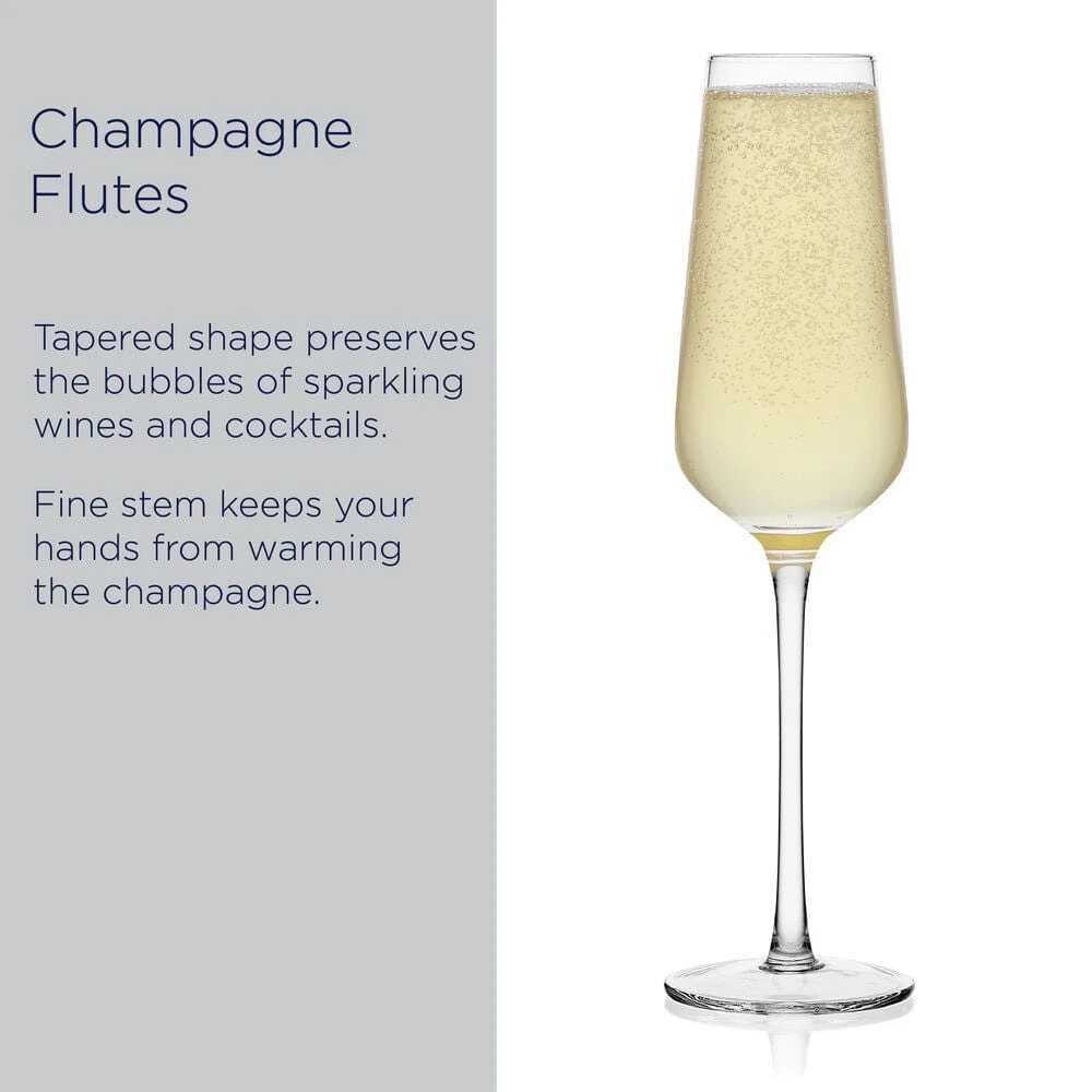This elegant and sophisticated Samantha Set of 4 Flute Glasses captivates with unexpected curves that slightly flare outward as they move down the silhouette of the bowl. Beautifully crafted of lead-free crystal, this set brings modern allure to both casual or formal occasions.