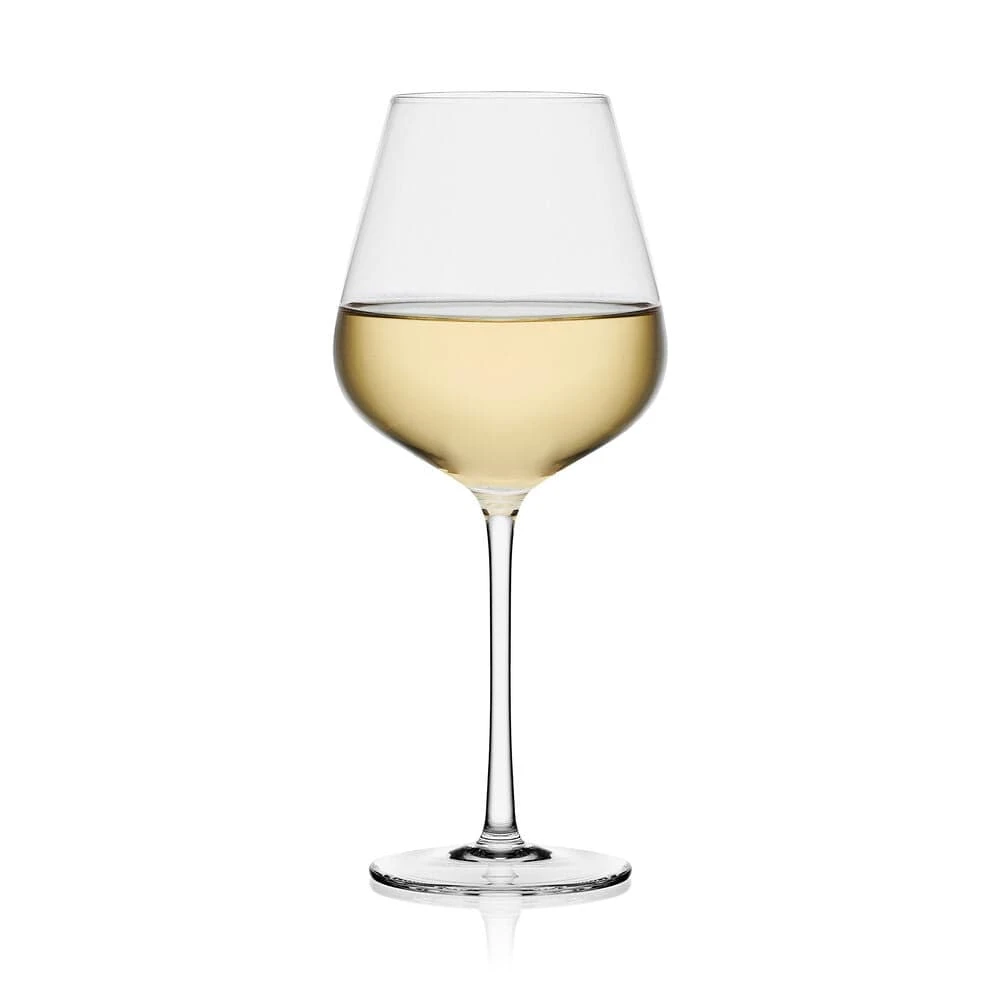 This elegant and sophisticated Samantha Set of 4 White Wine Glasses captivates with unexpected curves that slightly flare outward as they move down the silhouette of the bowl. Beautifully crafted of lead-free crystal, this set brings modern allure to both casual or formal occasions.
