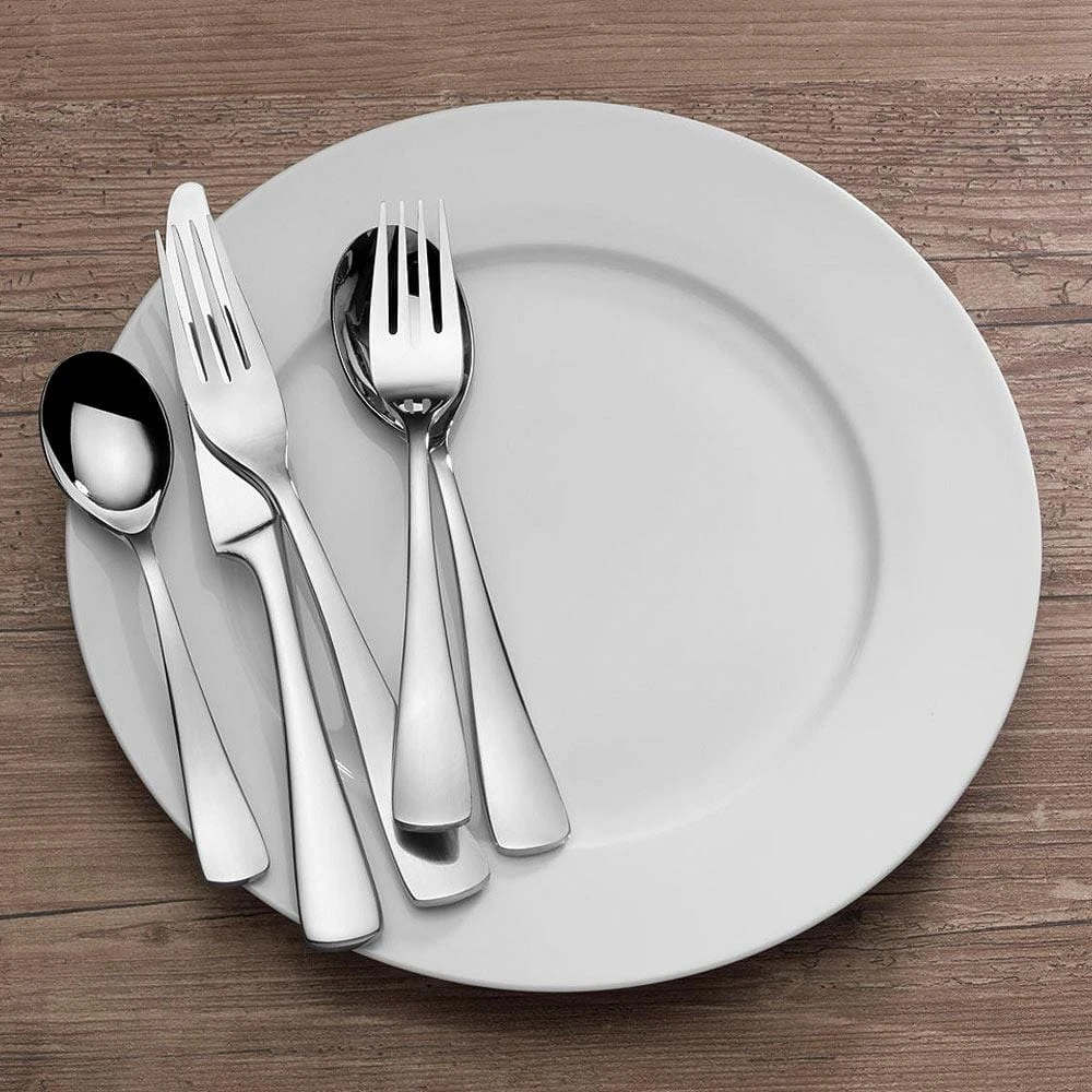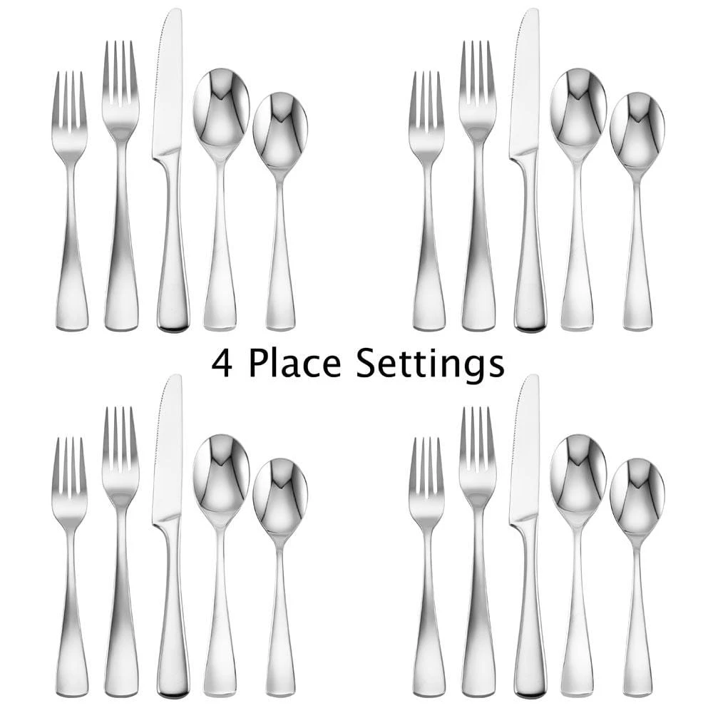 This Serena Flatware Set features a traditional design with a clean rounded look. Produced from top quality 18/0 stainless steel, this set is made for lasting durability. 20 piece set, service for four, includes (4) each: dinner fork, salad fork, dinner knife, dinner spoon and teaspoon. Dishwasher safe.