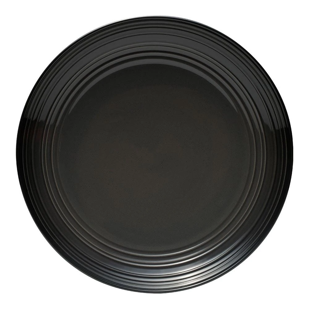 Swirl Black dinnerware combines a coupe shape, a shiny finish and a graphite ombre accent for a truly modern look. The graphite color will add a bold touch, and a striking statement with its versatile style. Crafted of ironstone with a pin-firing technique which allows the entire bottom of the plate to be glazed, including the base. This process significantly reduces water absorption and increases chip resistance. 16 piece dinnerware set, service for 4, includes (4) each: 11-1/4 dinner plate, 9-1/4 inch salad plate, 8-1/2 inch (40 ounce) soup cereal bowl and 20 ounce mug. Microwave and dishwasher safe.