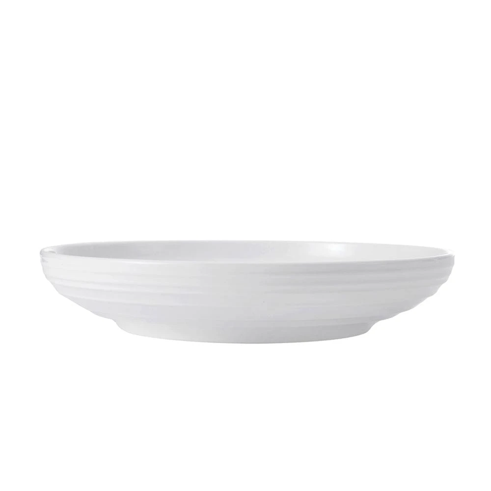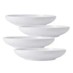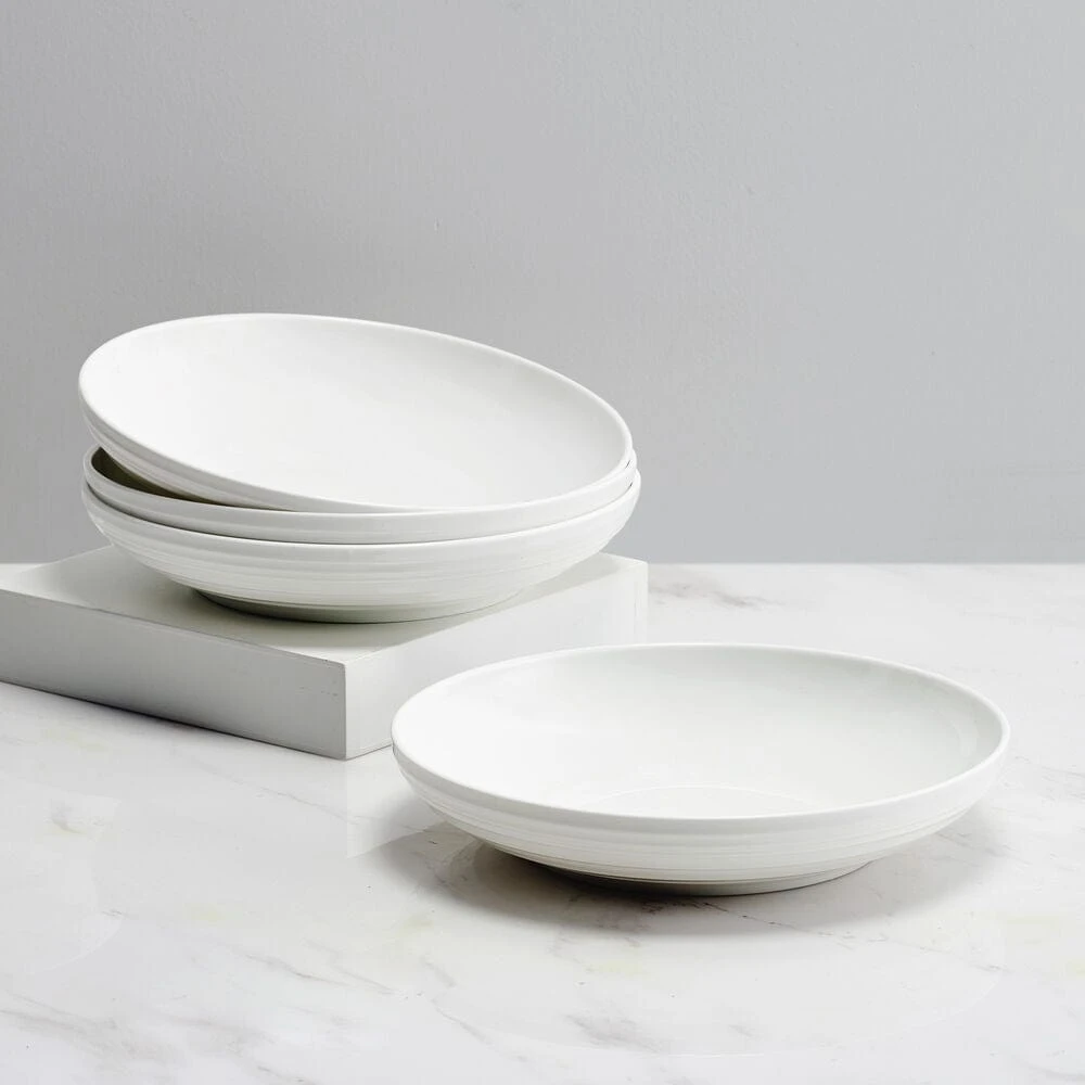This Swirl Bone Pasta Bowl Set features a crisp white surface, with a striated line design wrapping around the bowl, and will set a striking and original table.