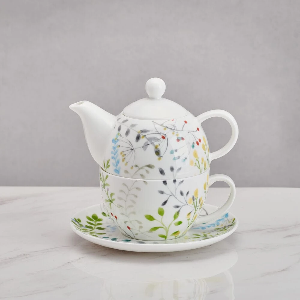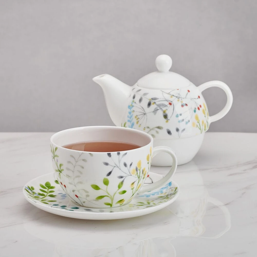 Enjoy your favorite cup of tea with the Tivoli Garden Tea For One Set! Featuring a delicate floral motif, this set includes a tea server on top of a tea cup, perfect for solo tea time. Embellish your senses with a relaxing and refreshing experience.