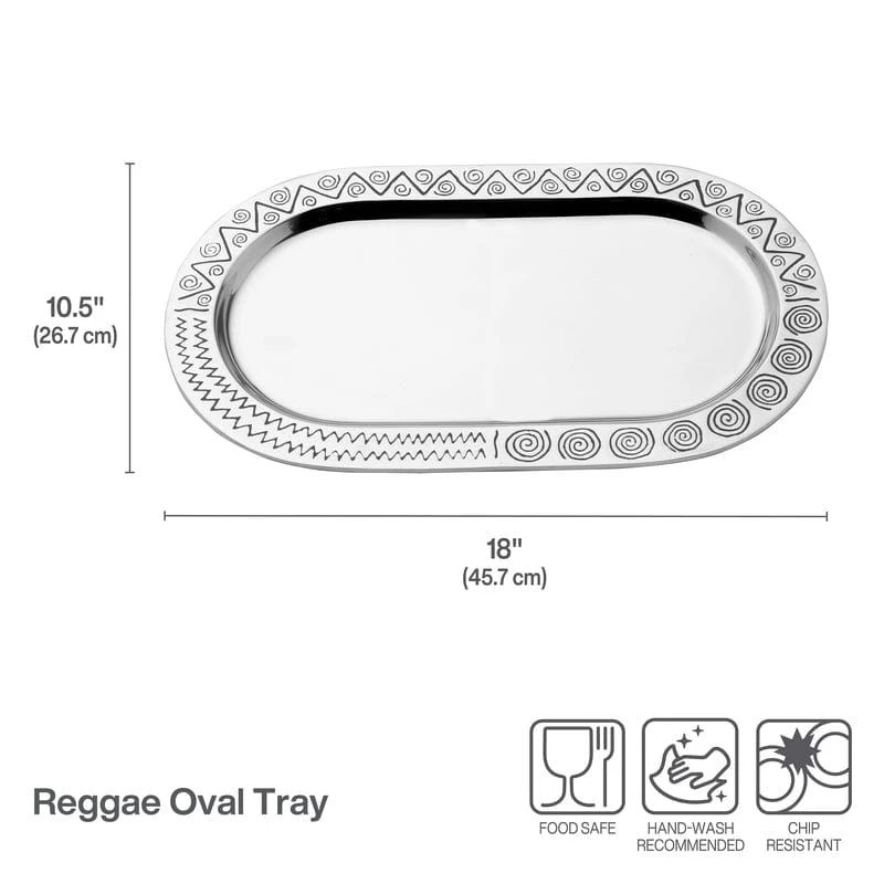 • Oval tray measures 18 inches long by 10 1/2-inches wide and sits 1 inch high