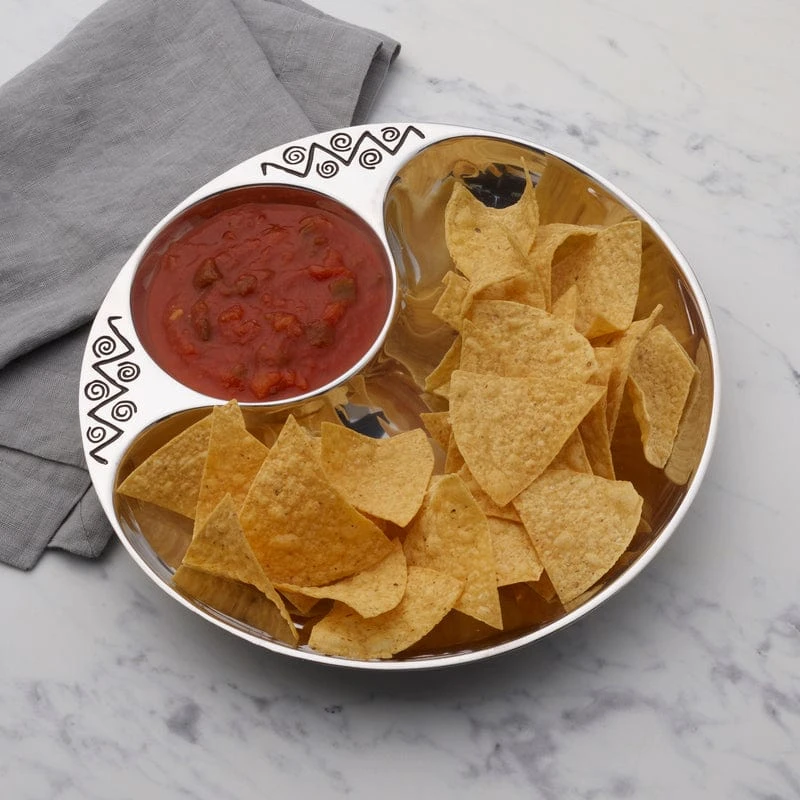 • Chip and dip measures 10 1/2-inches in diameter and sits 1 1/2-inches high
