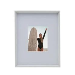From our family of brands, this Studio Nova Wall Frame in White can be used with the mat to display one 8 x 10 inch photo, or without the mat to display one 16 x 20 inch photo of a special moment with friends and family. The classic design features sleek, white edges that bring a modern flair to your photo display. This frame has a beveled mat that draws attention to your photo and highlights its beauty. Use the sawtooth hangers on the back of the frame to hang vertically or horizontally on any wall. Makes a great gift. Frame measures 17 x 21 x 1.6 inches.