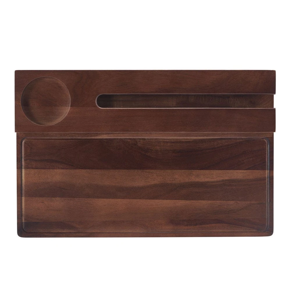 From the Gourmet Basics by Mikasa Collection, this Wine and Charcuterie Serve Tray is handcrafted of acacia wood, with organic appeal, and is generously sized for serving charcuterie, appetizers, cheese and more. Wine glasses not included.